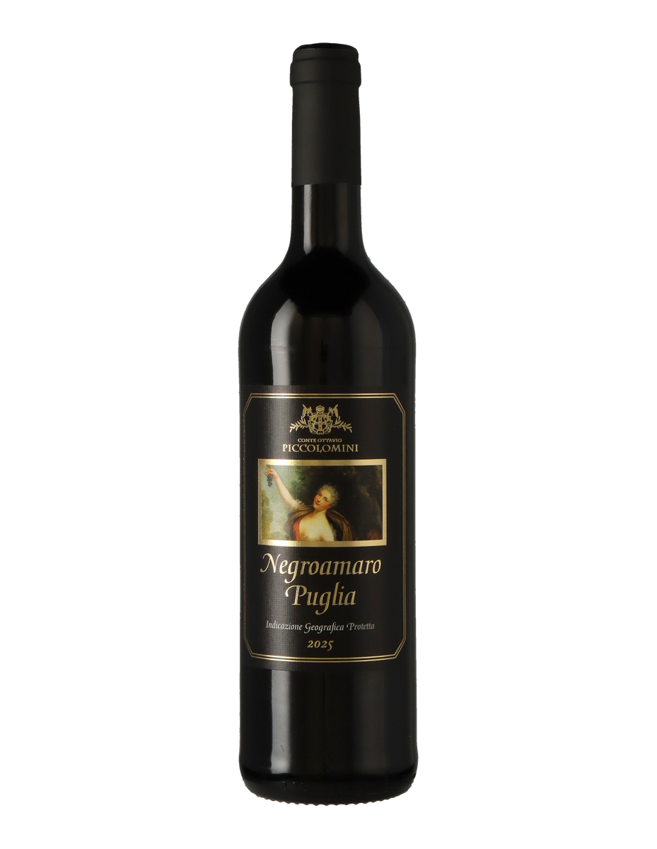 Der Piccolomini Negroamaro, IGP, Puglia, halbtrocken aus Apulien zeigt sich schwarzrot, mit viel Körper und viel Fruchtigkeit. Dominant sind Kirsche und eine dezente, rauchige Holz-Note; dahinter e...